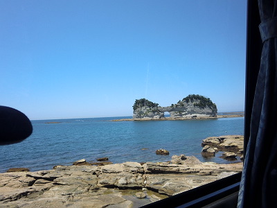 ↑バスは、潮岬を通過して、海岸線をそのまま時計回りにまわっています。この写真、海も海岸線もきれいですね。