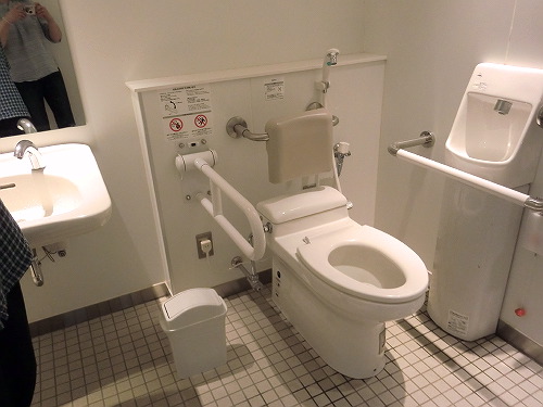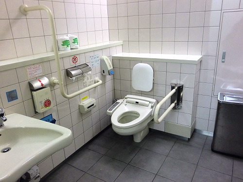 ↑帰ってきた時に入った多目的トイレです。オストメイトの方の設備があります。