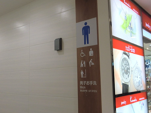 ↑男子お手洗いの表示。男子トイレスペースにも各対応が。